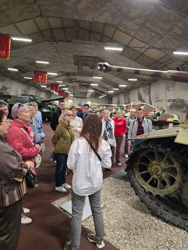 Нас ждал насыщенный день, полный интересных открытий и новых впечатлений. Мы посетили уникальный Музейный комплекс №1, где узнали много нового о военной технике времен Великой Отечественной войны. Особенно увлекательной была экскурсия о танках, которую провели профессиональные гиды парка.